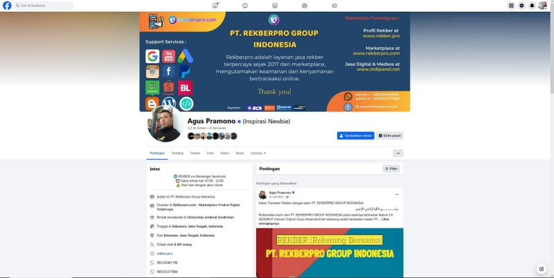 Agus Pramono menegaskan bahwa layanan rekbernya tidak hanya untuk bisnis, tetapi juga untuk melindungi transaksi online Anda. Hal ini dibuktikan dengan kebijakan biaya seikhlasnya untuk menggunakan jasa rekbernya.